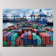 Contentores de carga prontos para exportação: Cena de Entrega Ocupada e Logística Global. Uma fila de contentores de carga preparados para exportação internacional é contra um píer de transporte que se movimenta.