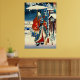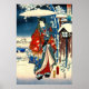 O painel triplo direito da cena da neve, do Tale Genji, é uma colaboração de Utagawa Hiroshige e Utagawa Toyokuni. Os painéis esquerdo e direito são assinados pela Toyokuni-ga (pintada por Toyokuni). Hiroshige hitsu (pincel de Hiroshige) está no painel central. De um corte original do século XIX (1857), Furyu Genji Yuki no Nagame, por Utagawa Hiroshige e Utagawa Toyokuni. Todos os direitos reservados © 2013 padre art