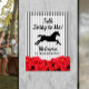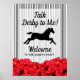 A placa de boas-vindas do partido ACRYLIC Derby apresenta uma silhueta de cavalos de corrida, faixas e rosas vermelhas pretas e brancas, Talk Derby para Mim com os detalhes do seu partido em letra chic. CORRESPONDENTE a itens na nossa coleção.