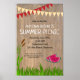 Este convite para piquenique de empresa apresenta um design rústico. Bandejas de bandeira vermelha e amarela, grama e melancia destacam o fundo da madeira.
