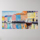 Poster Copenhaga num dia brilhante, edifícios coloridos e