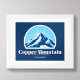 Poster com um logotipo da Copper Mountain Colorado apresenta uma montanha azul maravilhosa com um fundo ensolarado.