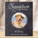 Bebidas com Sombreamento de seus animais de estimação! Inclua seu melhor cão, melhor gato e qualquer animal de estimação em seu casamento com seu próprio bar de bebidas com sombreamento para seus convidados. Perfeito para amantes de cães, e um bar de cães especial será um sucesso em seu casamento. Simples, porém rústico, quadro-negro com esboço preto e folhas de eucalipto.