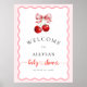 Coquette cherry no poster de boas-vindas do chá de fraldas de cereja cor-de-rosa.