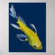 A partir de uma pintura original em aquarela, de Sacha Grossel, de um koi japonês amarelo, pintado em forma livre, estilo pincel asiático. Esse peixe decorativo e ornamental pode ser colocado sobre um fundo personalizado - é mostrado aqui no tradicional azul-marinho japonês. Bom Feng Shui - Esta pintura é para koi, peixes e amantes da arte japonesa em todos os lugares.