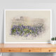 Bluebonnets dominaram esse campo no coração do Texas. Arte pintada sobre um fundo creme do campo com um celeiro velho ao fundo. Lindas flores roxas perfeitamente se combinam com qualquer decoração do Texas. Altere o texto na frente para o seu nome ou outro texto. Produtos correspondentes disponíveis.