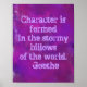 As roxas escuras e as pintas vívidas, ricas, misturam-se e misturam-se para criar um interessante design de textura abstrato. Feito em aquarela. Citação escrita nesta poster é de Goethe. Lê-se: O caráter é formado nas tempestades do mundo.