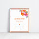 Preencha a mesa dos jogos de chá de sua menina com este floral cor-de-rosa e laranja Adivinhem a placa poster de Comida bebê, perfeita para um primavera divertido ou chá de fraldas de verão. Com florescimento botânico vibrante e um tema de festa divertida no jardim, ele adiciona encanto à sua configuração e convida os convidados a se juntarem à diversão. Um detalhe doce e interativo para a decoração do chá de fraldas floral.