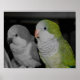 Par bonito de papagaios quaker ou periquitos de monge feitos em preto e branco com impressão de poster de animal de cor parcial. Fotografia natural de Susan. Para mais posters e impressões florais, animais e naturais, por favor visite minha galeria de poster Smilin' Eyes Posters. Esta imagem está disponível em muitas cartas e produtos na minha loja principal "Smilin' Eyes Treasures".
