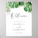 Este sinal de boas-vindas do casamento apresenta folhas tropicais de palma de aquarela e uma letra elegante. Esta poster de boas-vindas é perfeita para a sua praia, destino ou casamento na ilha.