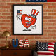 Um coração patriótico americano com um rosto feliz vestindo um chapéu e acenando uma bandeira. Esta design parece realmente eficaz nestes Poster