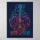 Este poster celebra o amor da música e do violão. Ele tem uma ilustração simplista de um violão eletrônico rodeado por um grande coração de neon e notas musicais.