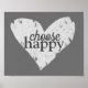 Escolha cinzas designs de texto felizes e brancas com poster de coração pintado para decoração de arte de parede em casa, dormitório ou escritório. Arte copyright Ann Powell todos os direitos reservados.