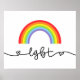 Esta trabalho de arte apresenta uma mão desenhada com a mão acenando uma bandeira colorida do arco-íris.
