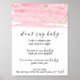 Este sinal "Don't Say Baby", cor-de-rosa-d'água, é o jogo interativo perfeito para um doce chá de menina. A luxuosa design feminina apresenta uma textura de cor d'água de rosa claro com um salto de poeira falsa dourada e uma elegante letra do roteiro de caligrafia. Nota: Este design não apresenta brilho de ouro real. É um gráfico de alta qualidade feito para parecer um brilho dourado.