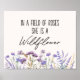 Elevem o vosso espaço com a nossa Poster de Cotação de Cachorro Roxo da Watercolor, com um campo de lavanda e o texto "num campo de rosas, ela é uma flor-selvagem" nas fontes de moda. Perfeito para amantes de flores silvestres e entusiastas de vassoura.