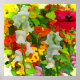 Este poster colorido é um banquete para os olhos! Ele apresenta uma configuração de jardim informal com snapdragões cor-de-rosa e brancos, náuseas em laranja, amarelo e vermelho e uma papoila vermelha. A fotografia original foi digitalmente melhorada para produzir um padrão impressionista abstrato.