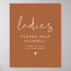 Esta placa de toalha das senhoras do casamento apresenta um figurino boêmico editável e um esquema de cor de ferrugem e uma design moderna minimalista. Use este poster para sua recepção de casamento, chá de panela, chá de casais, etc. Par com itens adicionais da coleção CORIANDER para uma aparência coesa.