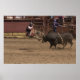 A Bull Rider voa com a ajuda de um touro furioso num concurso de rodeio