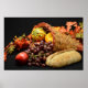 Colheita abundante de frutas, legumes, pães e várias comidas
