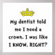 Princesas, rainhas, chefes e realeza podem se relacionar. Meu dentista me disse que eu preciso de uma coroa. Eu era como se eu soubesse, certo? Veja este design personalizado engraçado em camisetas, camisas, canecas, pijamas, presentes e roupa.