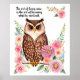 Poster Coruja De Aquarela No Limbo Com Flores Bonito