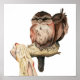 Esta é uma pintura aquosa de duas corujas marrons sentadas em um galho de árvore. Uma coruja tem os olhos bem abertos e a outra está esgueirando os olhos como se estivesse com sono.