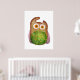 Poster de ilustração engraçado de coruja aquosa para cama e café da manhã, hospedeiro e outros negócios.