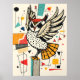 Coruja Whimsical em um posto com asas prontas para pegar o voo, Meio século Modern Vibe. Estilo MCM