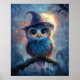 Poster Coruja Whimsical no Chapéu das Bruxas com Lua Chei