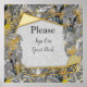 Diversão Expressiva em Folhas de Amarelo e Cinza para os esquemas de cores de 2021 com uma coruja fofa com olhos amarelos espumantes espreitando atrás da folhagem como uma design de diversão inspiradora dando a sensação de que tudo vai ficar mais brilhante para personalizar o tema do papel de carta de casamento. Esta coleção vem com um livro de convidados correspondente para convidados de casamento assinarem
