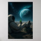 An astronaut relaxes on a lunar surface while gazing at a glowing planet under cosmic lights. This dreamy sci-fi artwork blends humor, wonder, and peaceful outer-space vibes.