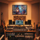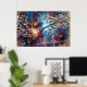 Vibrant electric guitar art surrounded by dancing musical notes! Abstract expressionist style with graffiti and colorful splatters. Perfect for music posters, album covers, and studio decor. Pure rock energy and urban rhythm that transforms any space with passion!
