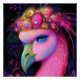 Este trabalho de arte de fantasia impressionante apresenta um flamingo cor-de-rosa real adornada com uma coroa cósmica radiante de órbitas e penas brilhantes, colocado contra um fundo profundo e estrelado. Queimada com cores neonatais e detalhes mágicos, esta vibrante peça combina perfeitamente a vida selvagem com imaginação celestial — ideal para amantes da fantasia, entusiastas de pássaros e colecionadores vibrantes de decoração.