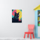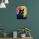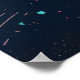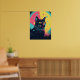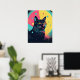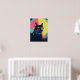 Um gato preto em greve com olhos amarelos brilhantes se destaca nesta peça de arte neon mesmerizante. Ao redor de uma exibição celeste de estrelas e órbitas, este poster combina mística e encanto espacial retrô.