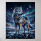 Poster Cosmic Wolf Under Aurora Sky