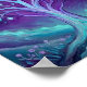 This fantasy poster features a vibrant purple tree with glowing teal leaves, swirling cosmic colors, and mystical floral accents in a dreamy surreal fantasy scene. Finished in a oil acrylic painterly style.