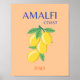 Poster Costa Amalfi, Itália, Viagem Art, Pastel, Laranja