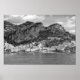 Foto preta e branca da aldeia de Amalfi aninhada abaixo das montanhas. Primeiro mencionado no século 6, rapidamente se tornou uma potência marítima. Na década de 1920-30 foi o parquinho da classe alta e da aristocracia britânica. Hoje é um destino turístico justamente famoso (juntamente com Positano e Ravello) na Costa de Costiera Amalfitana (Amalfi) e está incluído nos locais do Patrimônio Mundial da UNESCO. Copyright © Kate McKenna. Todos os direitos reservados. Ilegal de usar ou duplicar sem permissão.