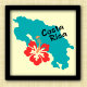 O contorno do mapa da Costa Rica com a flor de hibisco em cores tropicais. Alterar a cor de fundo se desejar (Personalizar/Editar menu/plano de fundo)