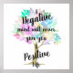 Citação: "Uma mente negativa nunca lhe dará uma vida positiva" Seus muros são reflexo de sua personalidade. Então deixe-os falar com suas citações favoritas, arte ou designs impressas em nossas posters! Escolha entre até 5 tipos únicos de papel e vários tamanhos para criar arte que é uma representação perfeita de você.