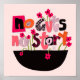 Uma citação engraçada e engraçada que foi desenhada pessoalmente. A citação é: "Sem Tripas, Sem História" e as letras sentam entre flores desenhadas à mão sobre uma tigela preta. O fundo cor-de-rosa pode ser facilmente alterado.