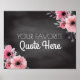 Crie seu próprio cartaz elegante de casamento de chalkboard com texto personalizado - Combina com decoração rústica e festas de temas de chalkboard ou casamento rústico ao ar livre ou casamentos de verão. Chalkboard olha fundo com um roteiro elegante e fontes modernas. Flores de pincel e flores cor-de-coral adornam canto superior e inferior. Use o botão Personalizar o Ti - Você pode até alterar os estilos de fonte, tamanhos, cores ou posicionamento. Complementa decoração de casamento vintage, decoração de casamento de quadro-negro, casamento de jardim ao ar livre, casamentos de primavera ou decoração de festa de aniversário de verão. Temos decor de casamento floral no nosso compro Zazzle/angela65.