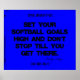 Este poster de softball motivacional apresenta uma citação de softball do autor e designer Felicity Luckey para a motivação de treinador, jogador e equipe. A imagem é de um "rasgado e rasgado" para o tecido de sucesso da malhação com a inscrição "thread solto". Há um total de 12 citações de softball nesta série de Excelentes Minds Think Ajustado™. Os posters de softball estão disponíveis em cores brilhantes e arrojadas, azul-denim escuro e colagens de várias aspas. A citação motivacional neste poster de softball diz: "Coloque seus objetivos de softball alto e não pare até chegar lá." ~ Felicity Luckey