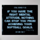 Este poster de softball motivacional apresenta uma citação de softball do autor e designer Felicity Luckey para a motivação de treinador, jogador e equipe. A imagem é de um "rasgado e rasgado" para o tecido de sucesso da malhação com a inscrição "thread solto". Há um total de 12 citações de softball nesta série de Excelentes Minds Think Ajustado™. Os posters de softball estão disponíveis em cores brilhantes e arrojadas, azul-denim escuro e colagens de várias aspas. A citação motivacional neste poster de softball diz: "Se você tem a atitude mental certa, nada pode impedi-lo de atingir seus objetivos de softball" ~ Felicity Luckey.