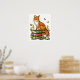 Este design de cottagecore floral apresenta uma raposa bonita sentada em livros cercados por flores da floresta.