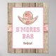 SINAL DE MESA DA FESTA DO BAR S'MORES - TEMA OCIDENTAL DA COWGIRL - 8 x 10 polegadas.