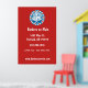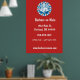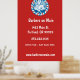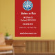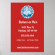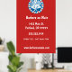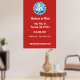 O poster de na moda apresenta um crachá de barbearia vermelho, branco e azul, no estilo retro, em fundo vermelho. Tem uma aparência moderna e pode ser uma ferramenta de marketing para a barbearia ou para o negócio de aliciamento de outros homens. Personalizar com detalhes da empresa