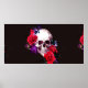 Poster Crânio com ramos de flores escuras e mar rosa verm