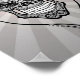 Este elaborado design de açúcar do crânio do DJ é decorado com entrelaçados e padrões de pontos. Fones de ouvido sentados em cima do crânio com dois fios pendurados abaixo. Raios de luz brilham em todas as direções atrás do crânio que emanam do centro do padrão. Este dia agressivo da imagem inspirada nos mortos é perfeito para músicos e amantes da música.